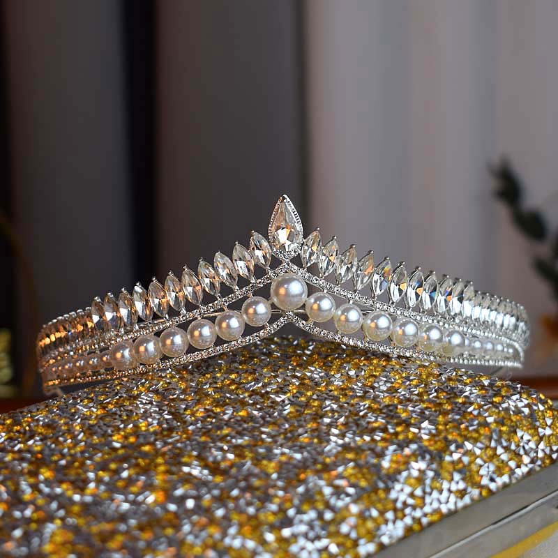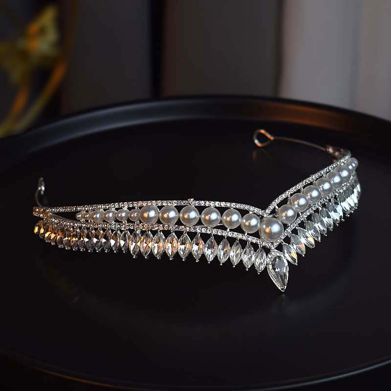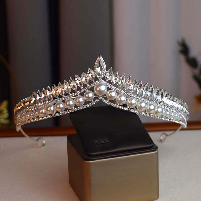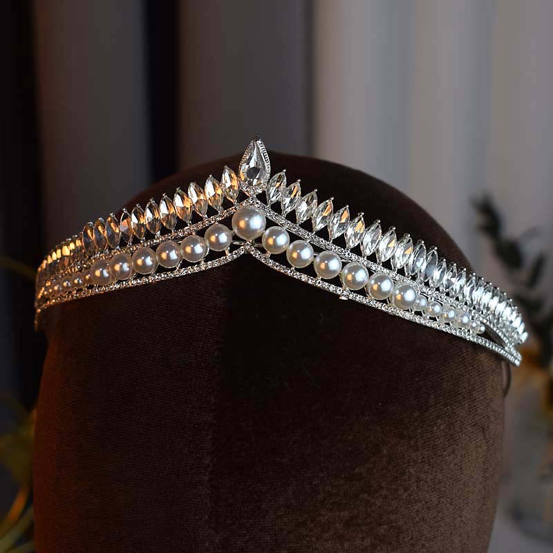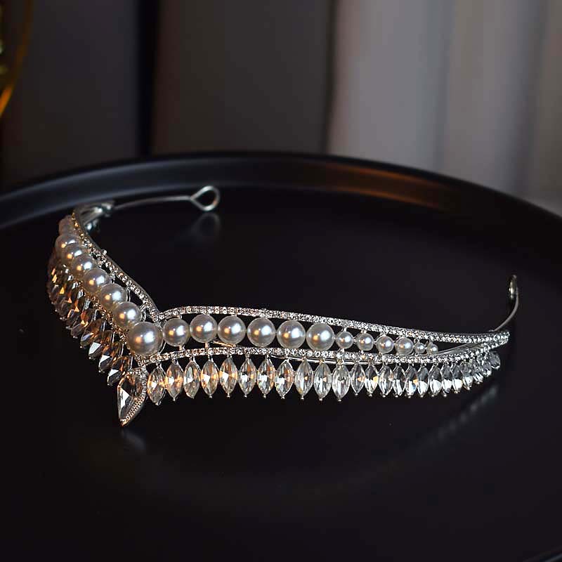 Crown Korean Rhinestone Headdress French Style Pearl Headband Bridal Crown Wedding Hair Accessories Birthday Princess Crown Temperament H2833