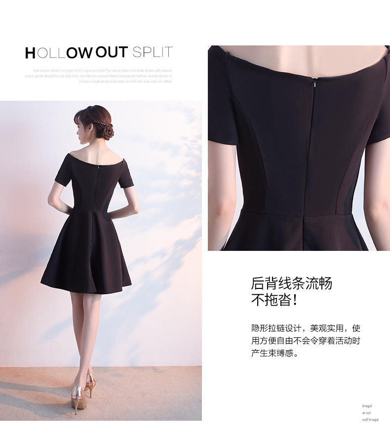 Banquet Evening Dress for Women, Short New Style, Slimming Elegant Princess Off-Shoulder Korean Version Bodycon Dress