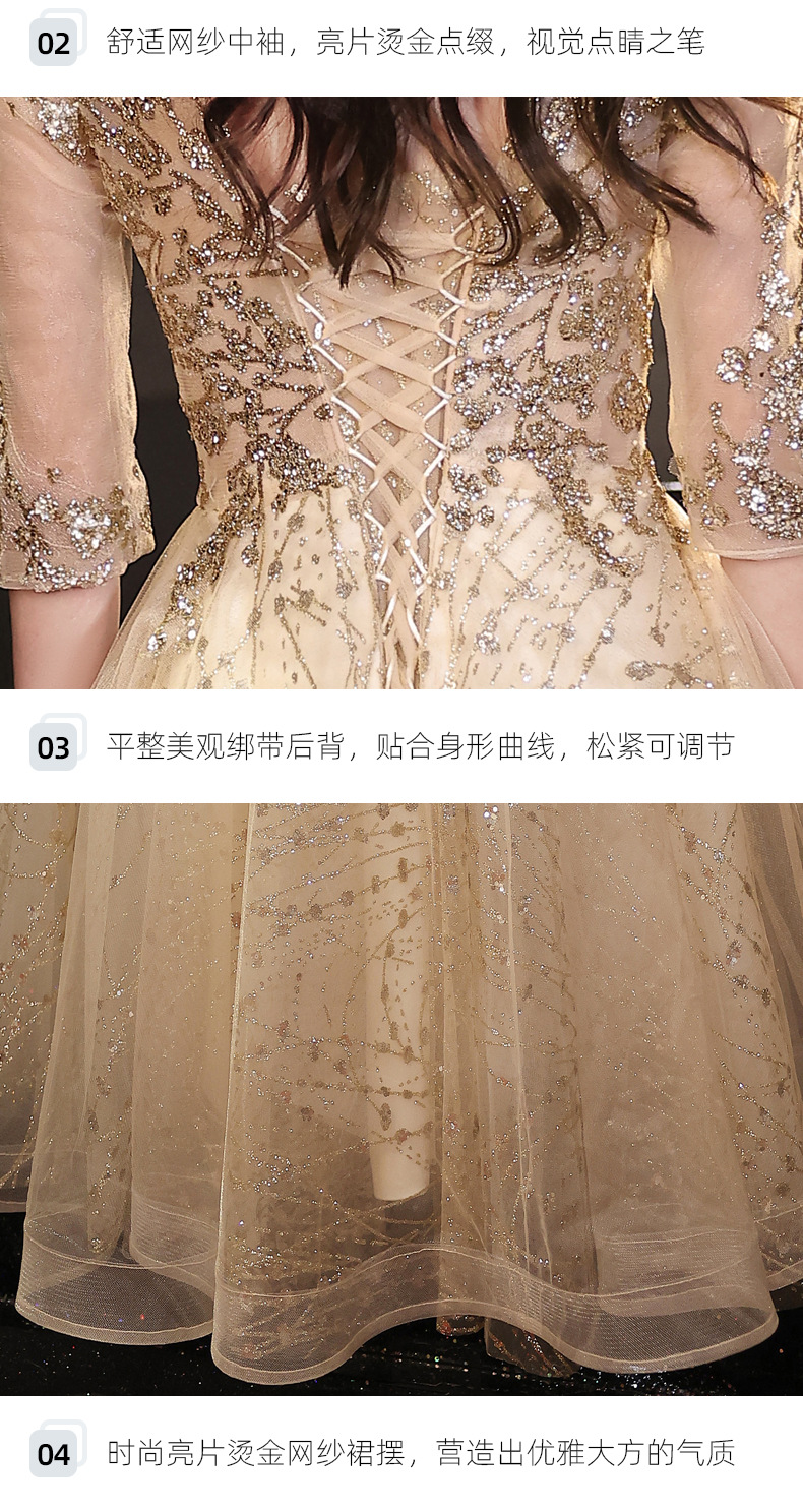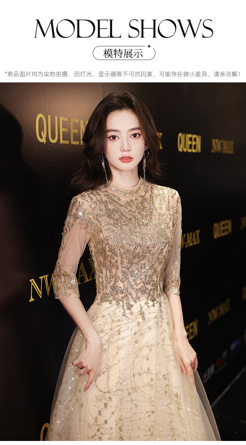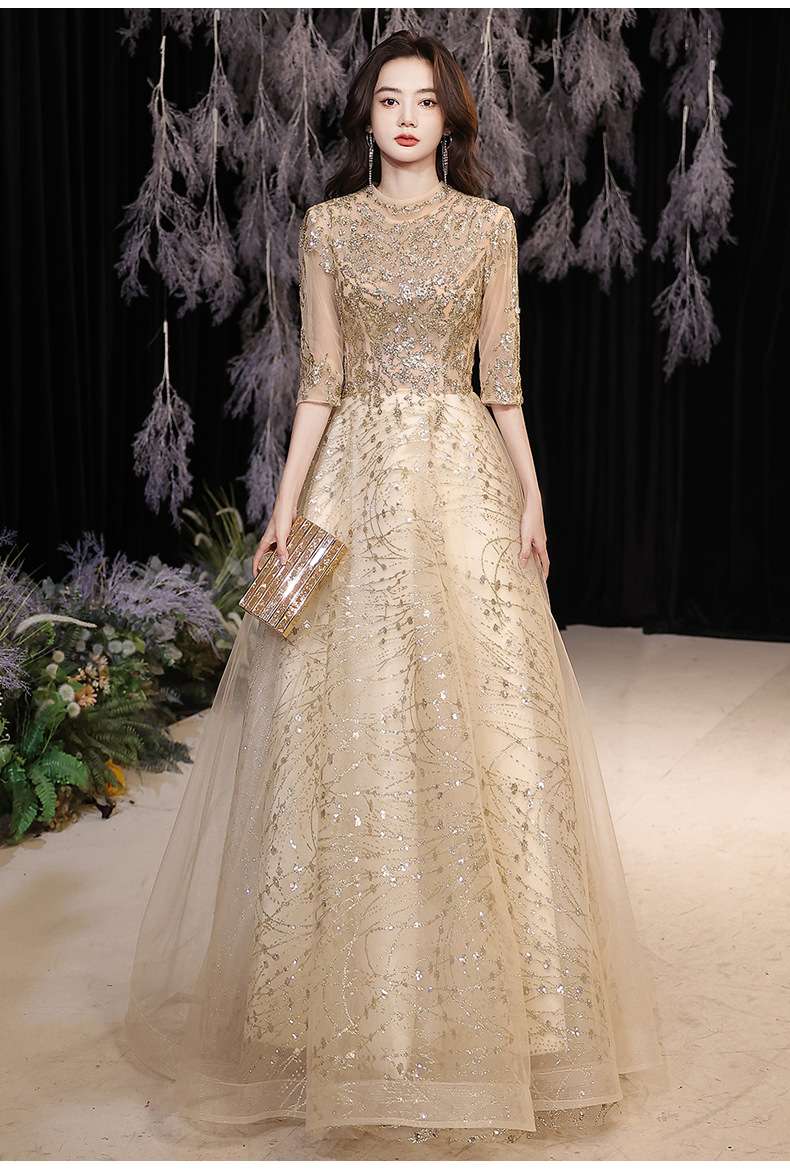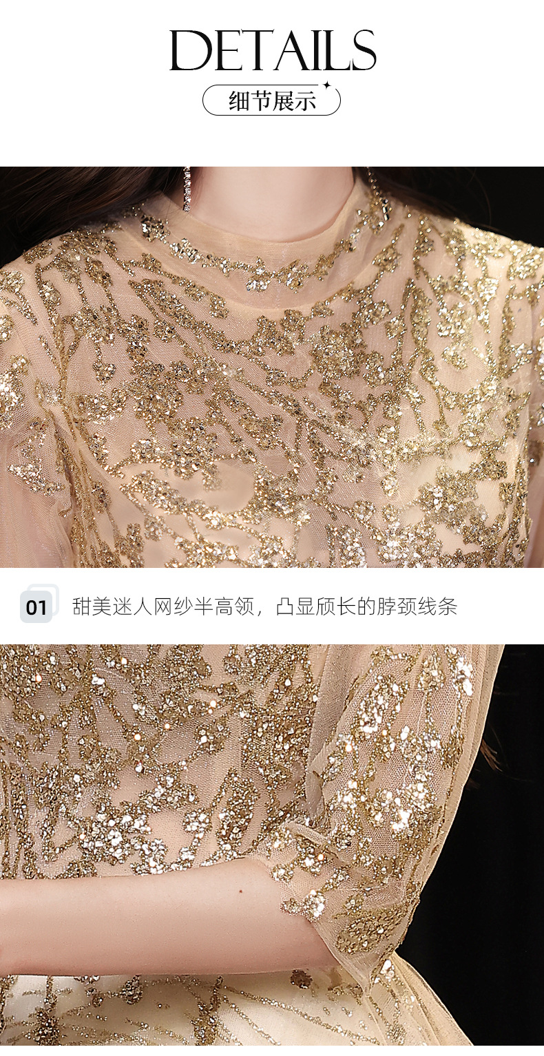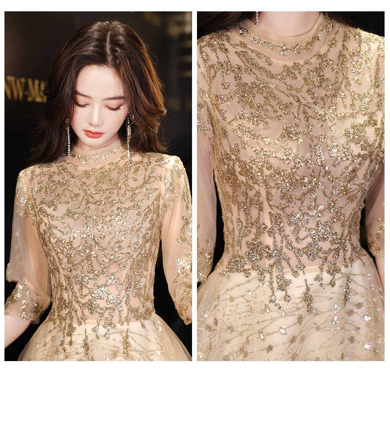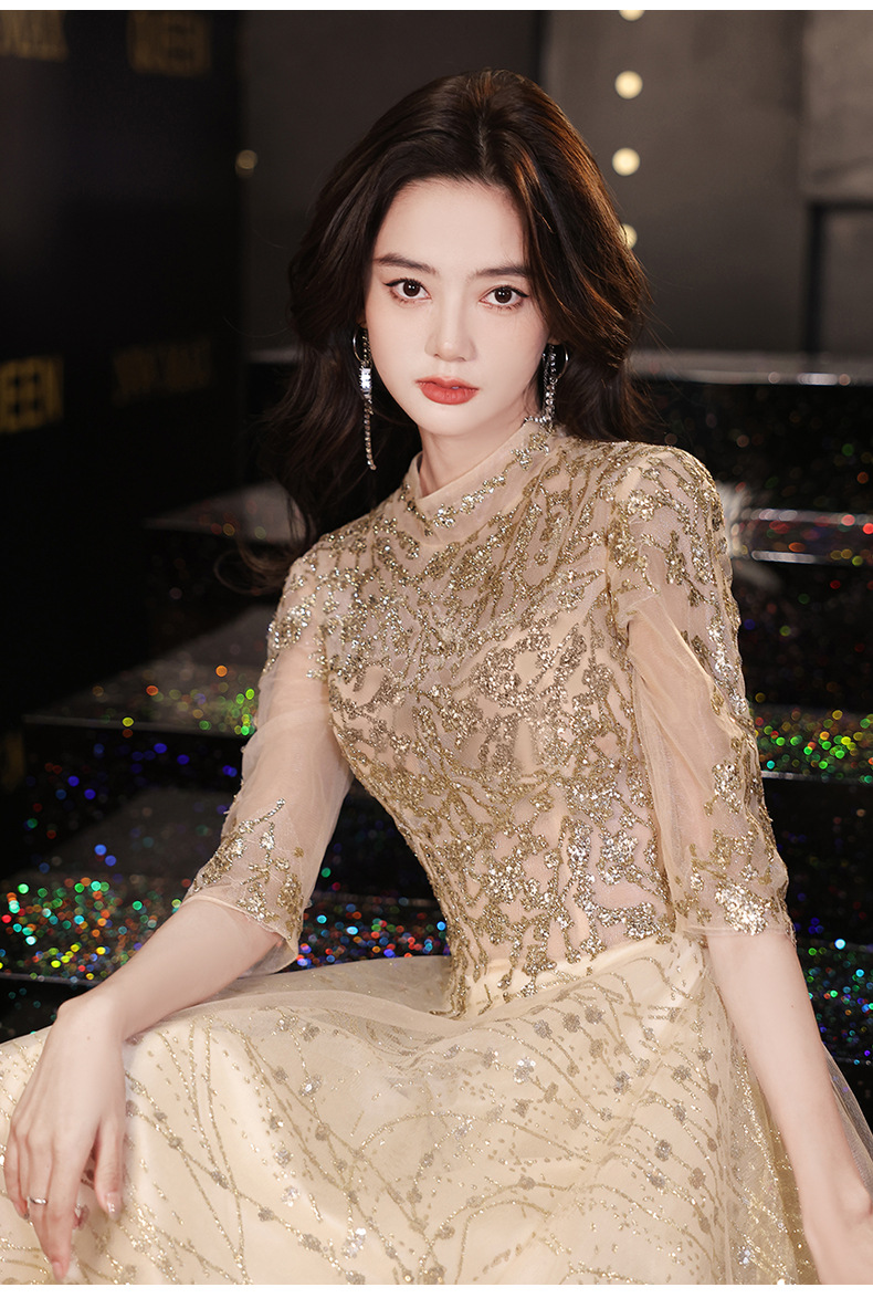Goleden Evening Dress formal dresses gala party gown Elegant Socialite Host Niche Banquet Golden Long Art Exam Slim-Fit Formal Dress H277
